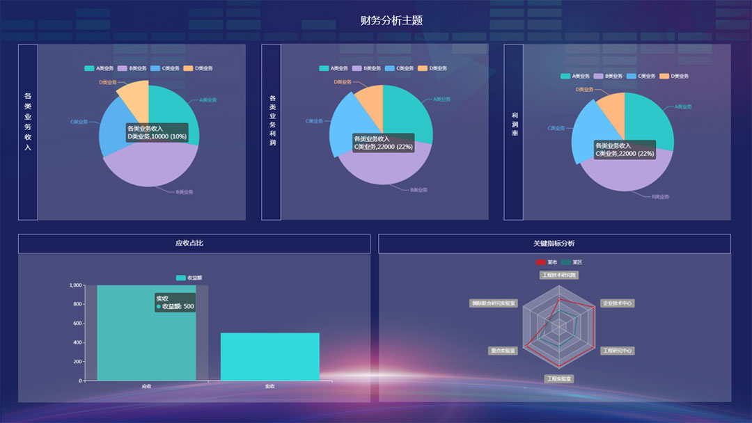 · 用户也可根据财务数据情况自定义制作内容,给上级一份可视化的数据报告。
