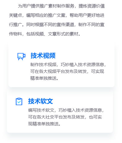 素材制作(1)技术视频制作 (2)技术软文编写 |